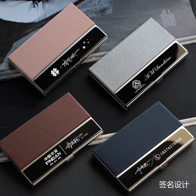 Free engraving is offered on all business card holders for men. A great gift for your boss or administrative assistant. We offer a premium selection of personalized card holders ranging from classic to contemporary designs. Personalized business card holders help you convey that professional image. Economy shipping only $6.95 free shipping on orders $75+ details. An engraved business card holder displays your branding in a subtle, elegant fashion that is sure to get attention. There are many font styles to personalize your engraved gift with. Business card holders and more personalized office accessories. The edges of a glass holder will capture the light in unique ways to accent your screen printed or laser etched logo. Keep your employees motivated with engraved pens, customized with their name or initials, or add some flare to their desk with unique desk accessories like engraved name plates or pen stands. Business card holders for men. A branded business card holder enables you and your colleagues to effectively promote the business and advertise the brand name and logo every time you meet someone new. Personalized business card holders make a great gift for any client or employee who needs a place to keep their cards neat and tidy.
